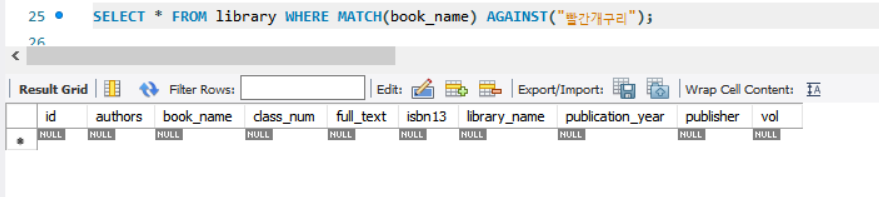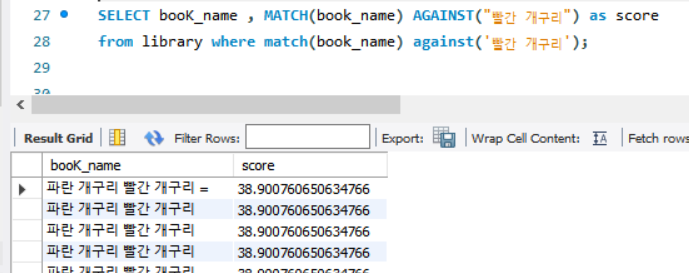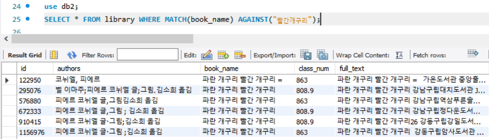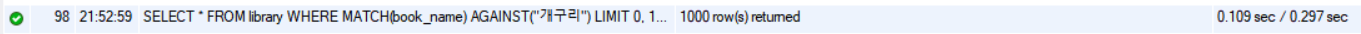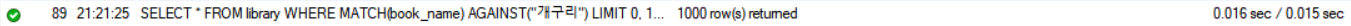 SELECT * FROM library WHERE MATCH(book_name) AGAINST("개구리");